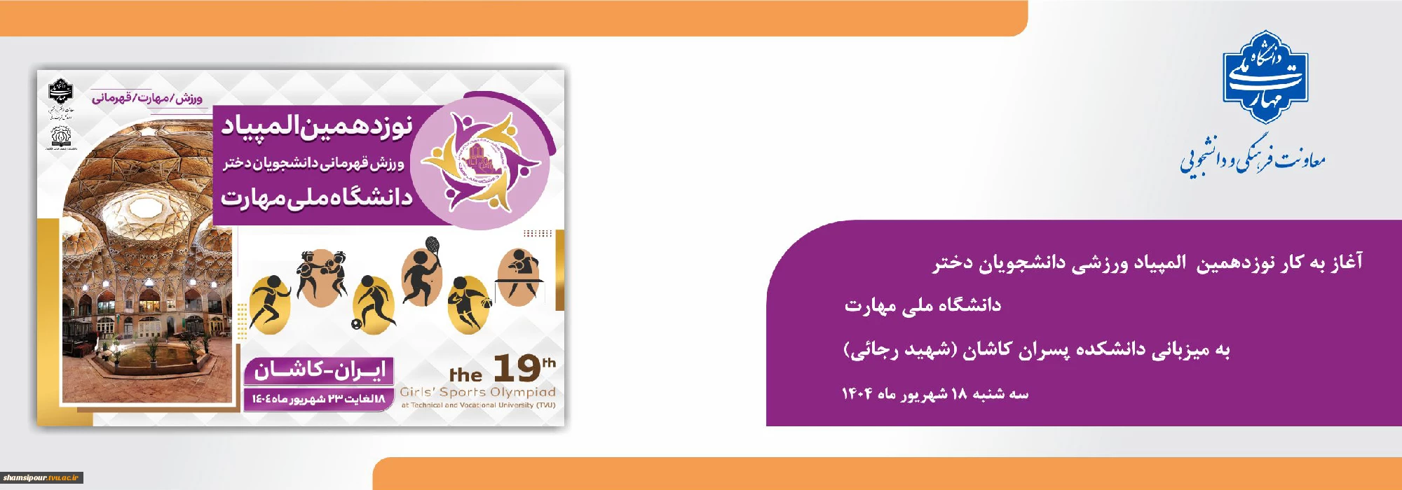 امتیاز دهید : آغاز به کار نوزدهمین المپیاد ورزشی دانشجویان دختر دانشگاه ملی مهارت به میزبانی دانشکده پسران کاشان (شهید رجائی) 2 سهشنبه 18 شهریور 1404 ساعت 7:31