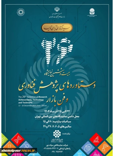 امتیاز دهید : بیست و ششمین نمایشگاه ملی دستاوردهای پژوهش و فناوری و فن بازار 1404 2 یکشنبه 30 شهریور 1404 ساعت 16:06