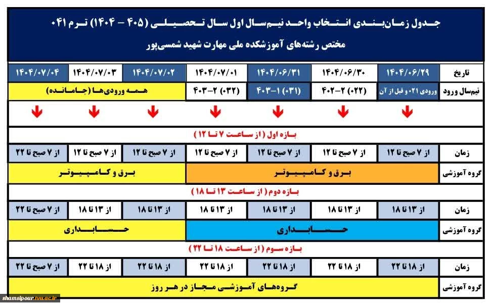 امتیاز دهید : زمان بندی انتخاب واحد نیمسال اول سال تحصیلی 1405-1404 3 دوشنبه 31 شهریور 1404 ساعت 10:42