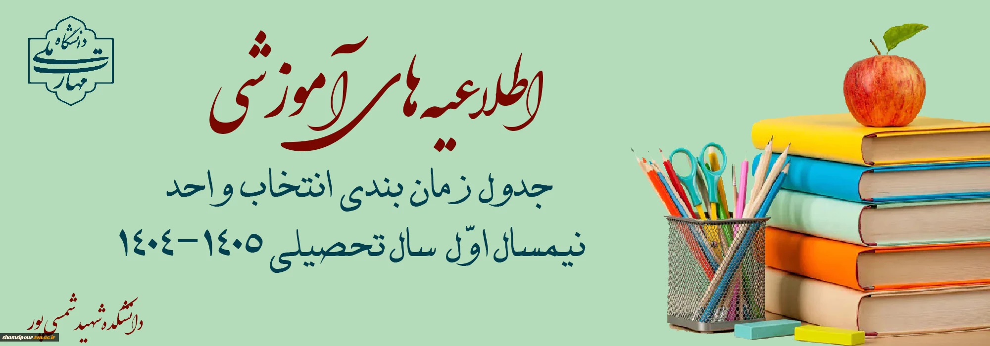 زمان بندی انتخاب واحد نیمسال اول سال تحصیلی 1405-1404 2