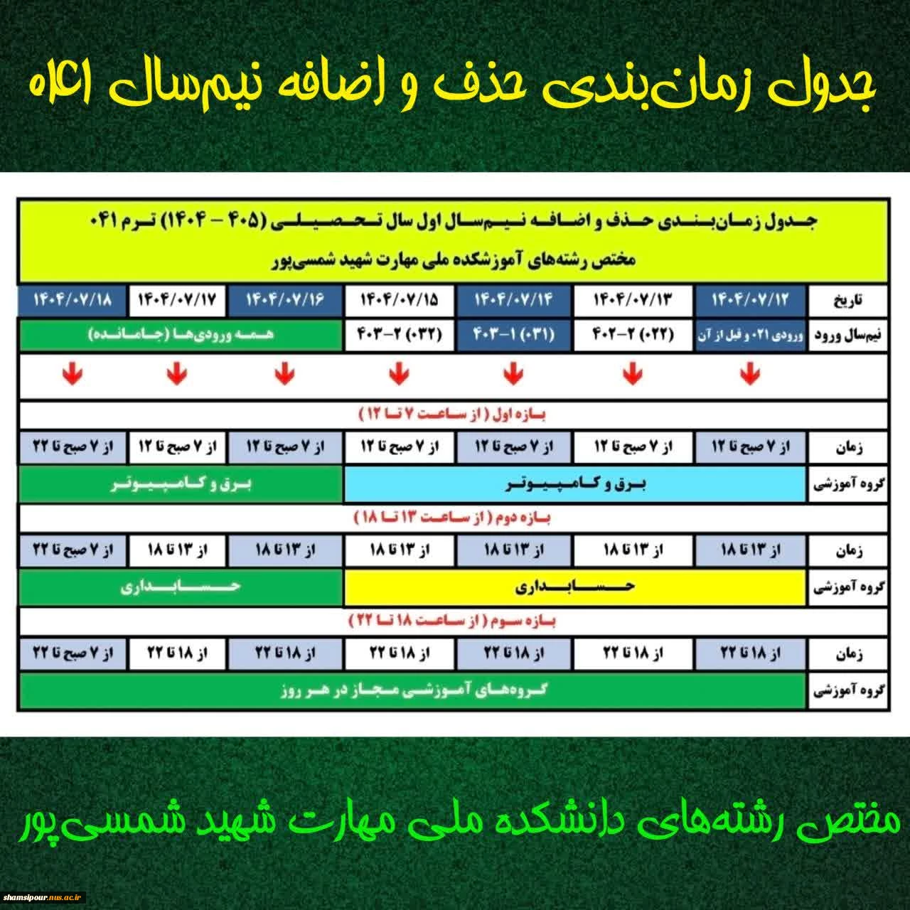 امتیاز دهید : جدول زمانبندی حذف و اضافه نیم سال اول سال تحصیلی(1404-1405) 2 یکشنبه 6 مهر 1404 ساعت 14:33