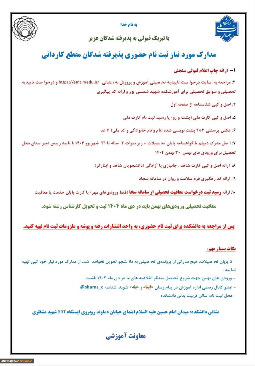 اطلاعیه ثبت نام کاردانی پیوسته 3