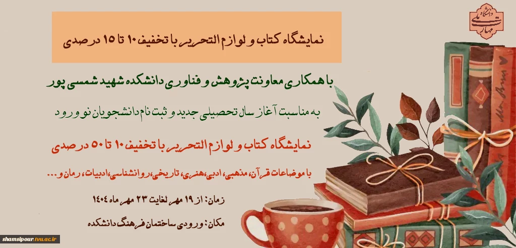 امتیاز دهید : برپایی نمایشگاه فروش کتاب با تخفیف ویژه به مناسبت آغاز سال تحصیلی در دانشکده شهید شمسیپور 2 چهارشنبه 16 مهر 1404 ساعت 13:53