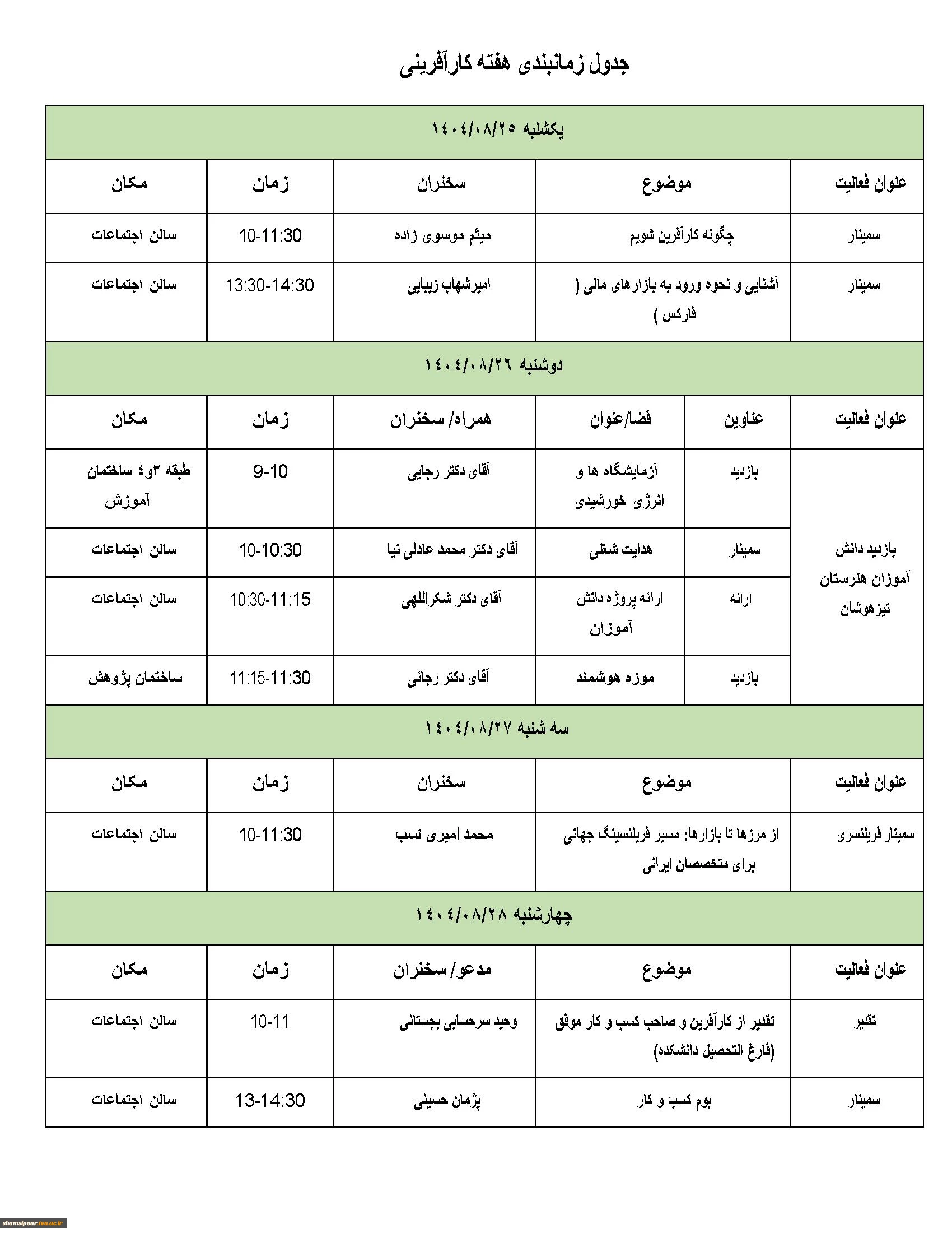 امتیاز دهید : اعلام برنامه گرامیداشت «هفته جهانی کارآفرینی» دانشکده شهید شمسی پور 4 شنبه 24 آبان 1404 ساعت 15:19