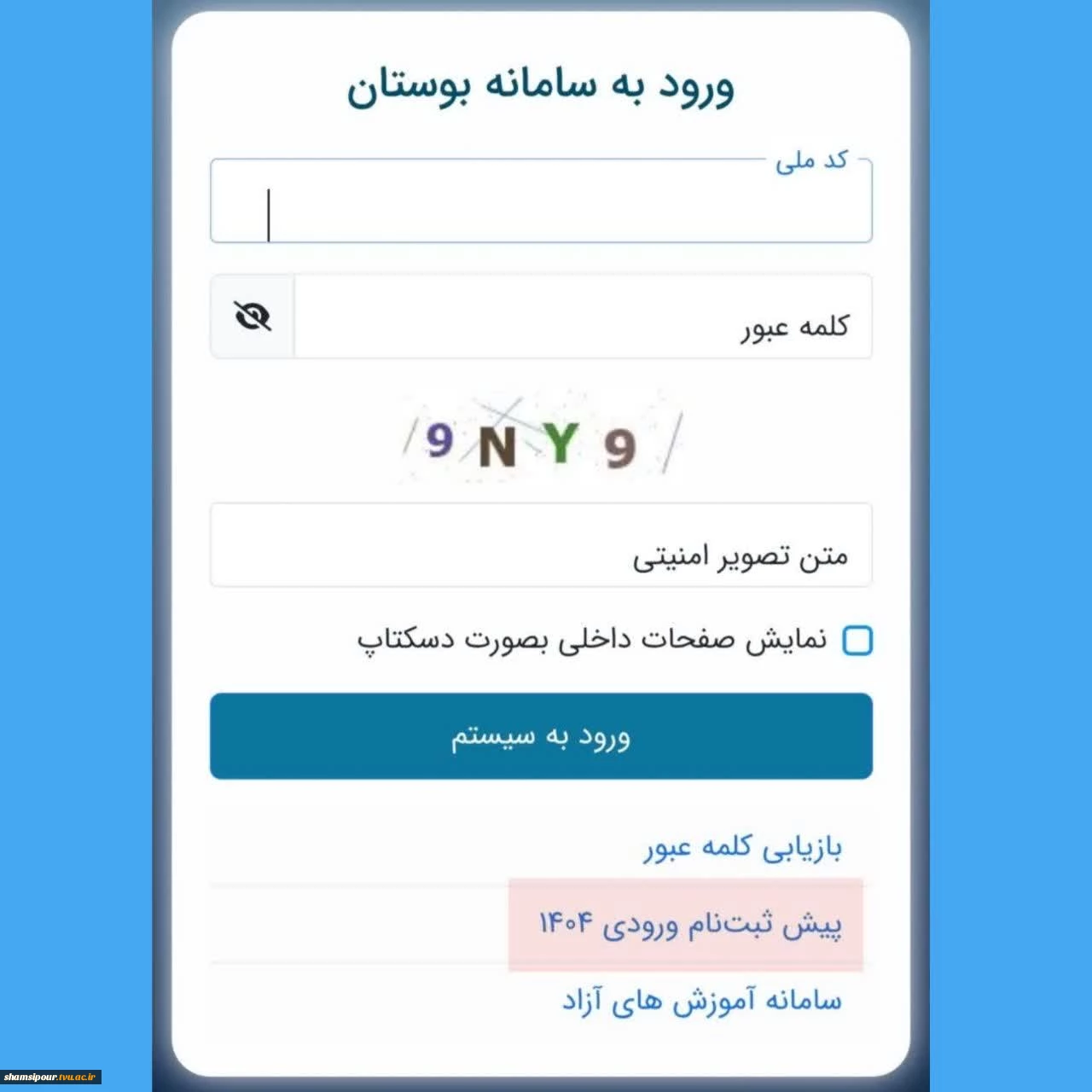 پیش ثبت نام جاماندگان وردی بهمن 1404 در سامانه بوستان 2