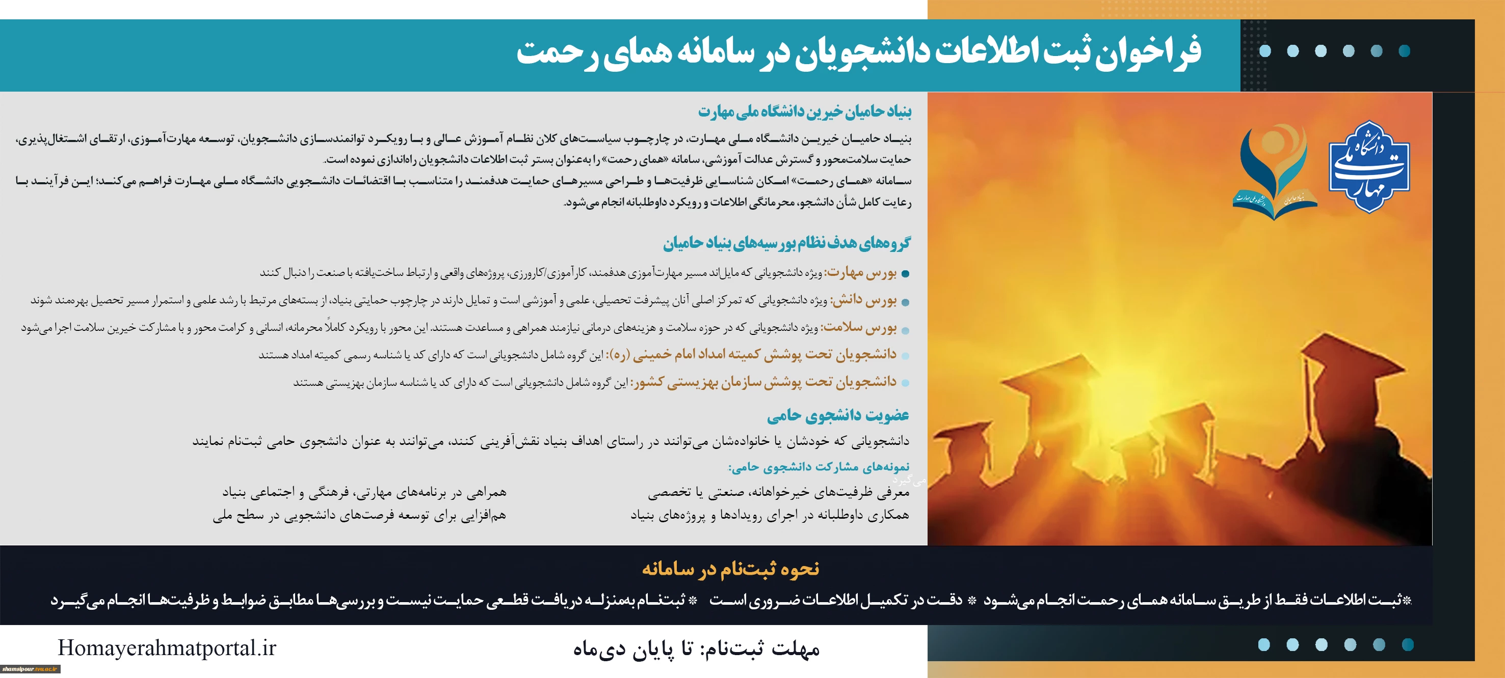 فراخوان ثبت اطلاعات دانشجویان در سامانه همای رحمت 2