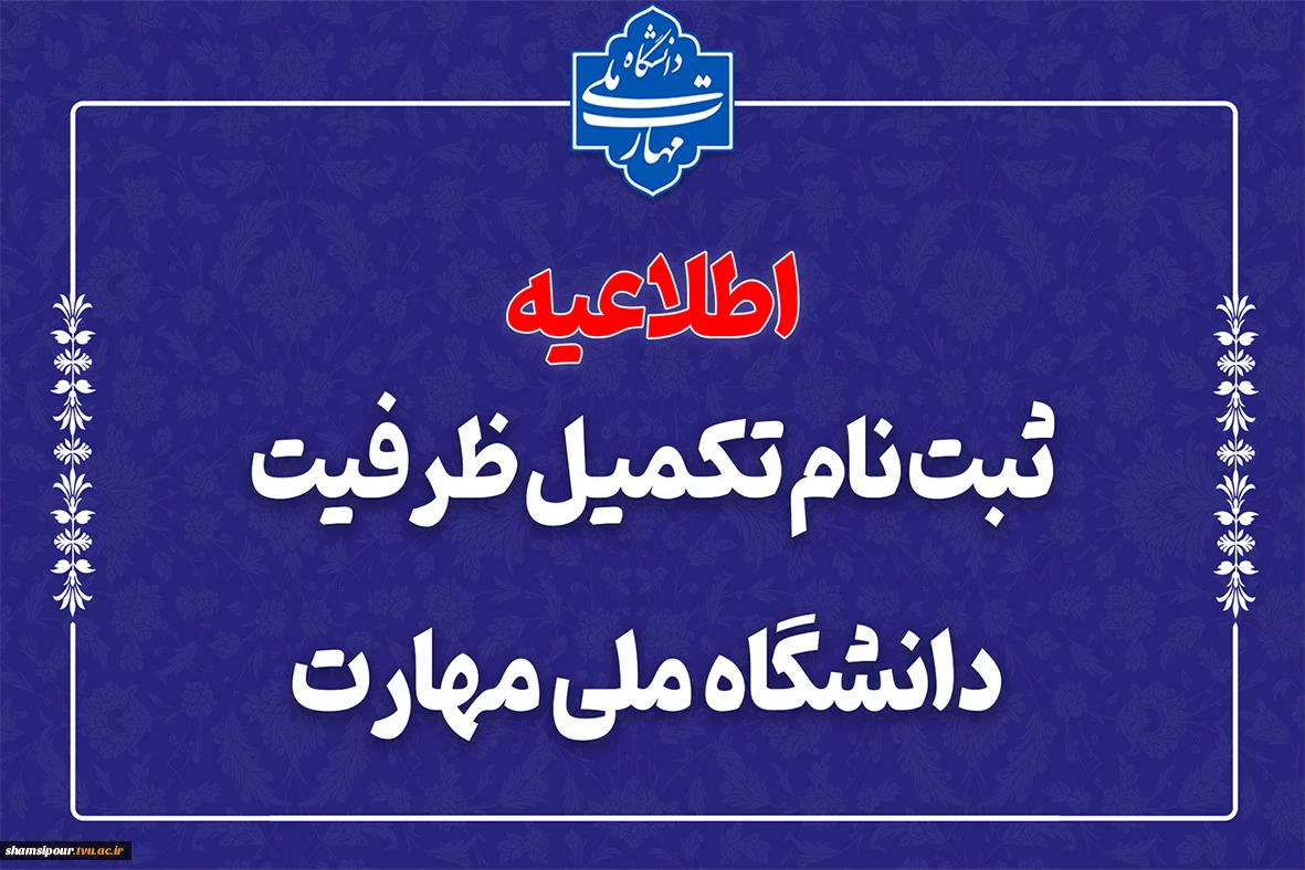 ثبت‌نام مرحله تکمیل ظرفیت دانشگاه ملی مهارت 2